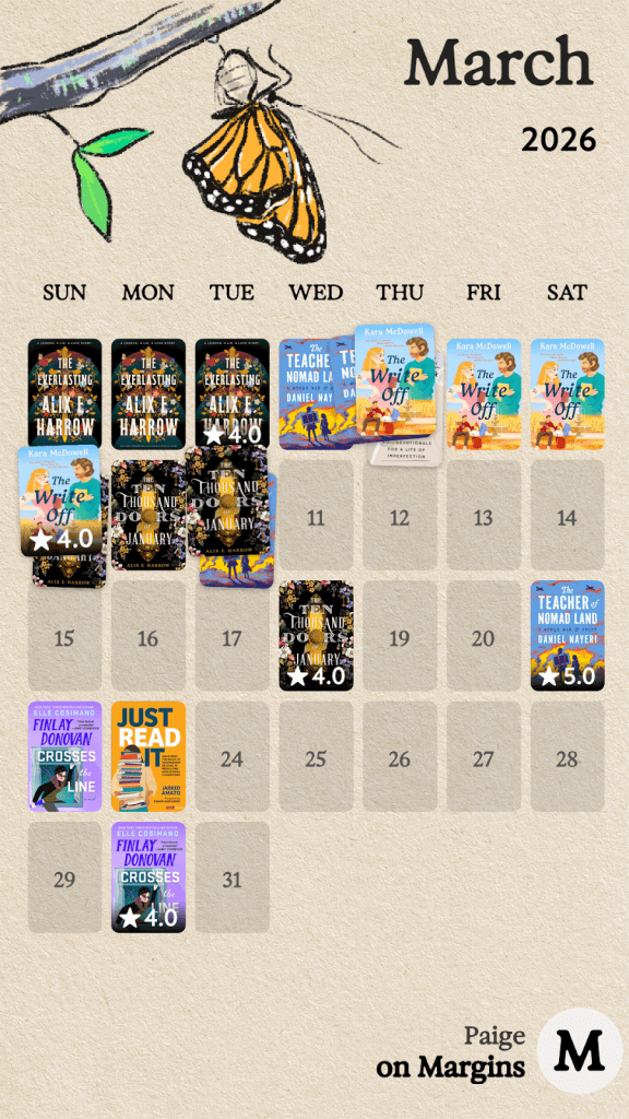 Margins also offers Instagram-worthy graphics featuring your reads. They’re perfectly sized for Instagram stories, and you get several cute options. You can do this for books you’re currently reading, want to read, and just finished reading. At the end of each month, you also get a Monthly Wrap-Up with about 10 options for displaying your reading log and stats from the past month. I’ve shared a few examples below. I discovered that they also do some absolutely STUNNING yearly wraps, so now I’m determined to use this app through the end of 2026 at minimum.